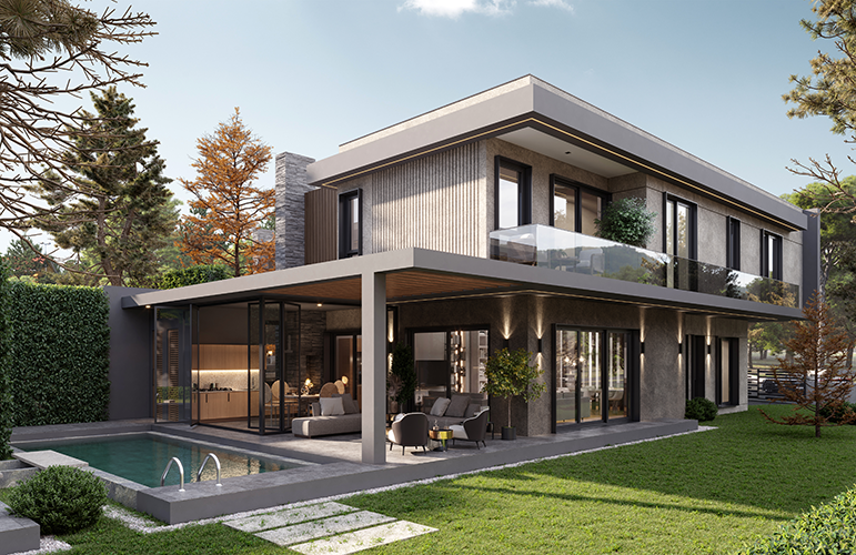 Geniş, yeşil ve özgürce nefes alabileceğiniz, herbiri özenle planlanmış 3+1, 4+1 ve benzersiz 4+1 E tipi villa